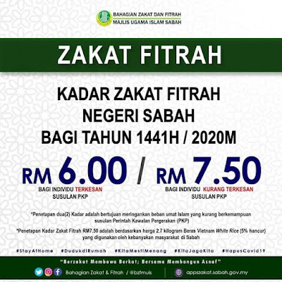 Kadar Zakat Fitrah Negeri Sabah Bagi Tahun 1441h 2020m