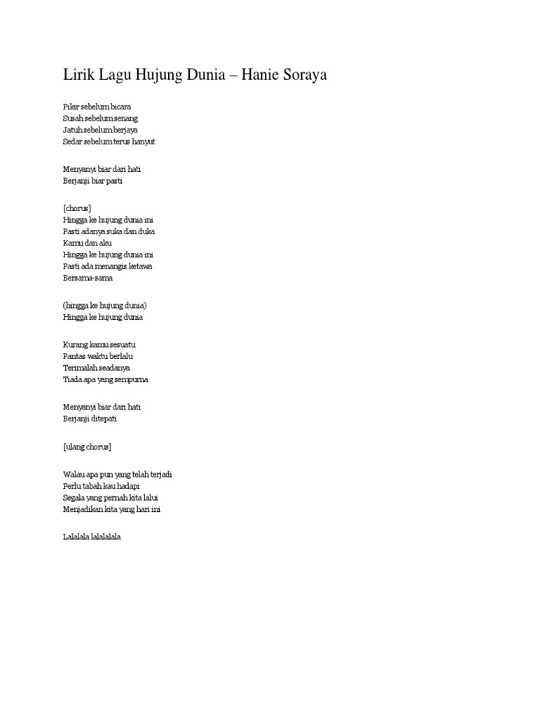 Lirik Lagu Hujung Dunia