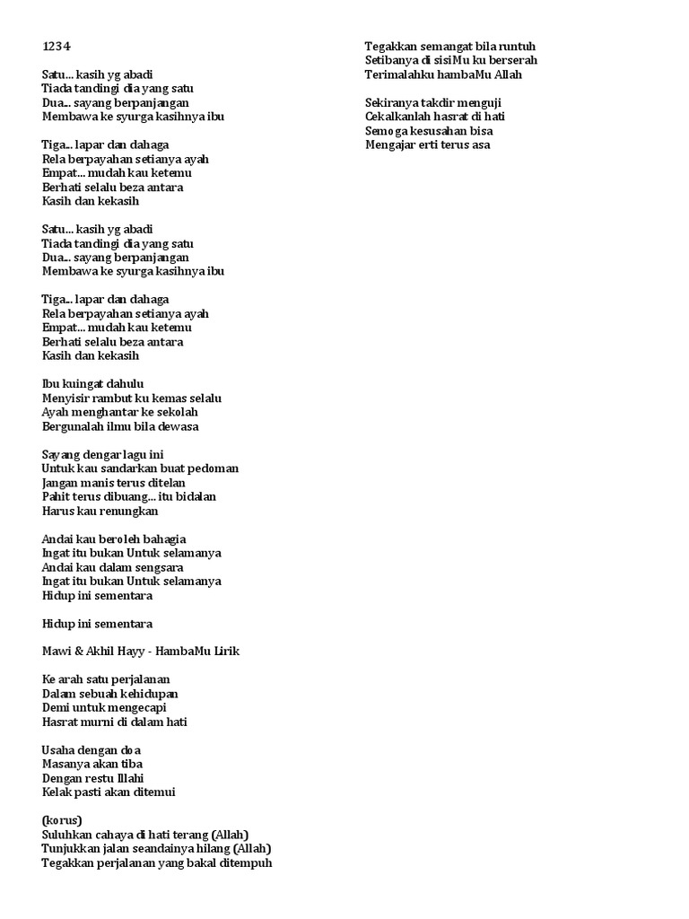 Lirik Lagu 1 2 3 4