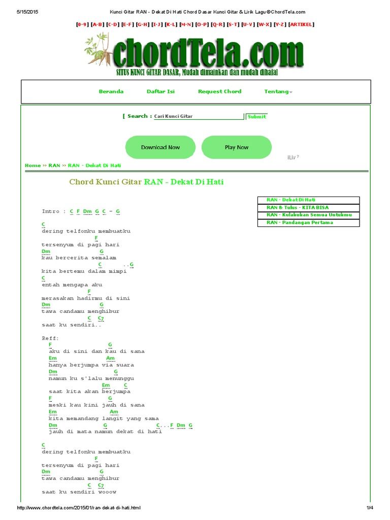 Chord Kunci Gitar Dan Lirik Lagu Dekat Di Hati Ran Aku Di Sini Dan Kau Di Sana