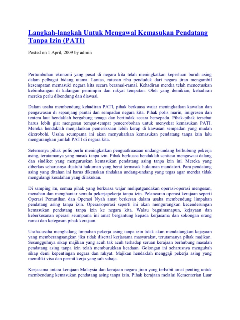 Contoh Karangan Bm Kesan Kemasukan Pendatang Asing Dan Cara Mengawal Kemasukkannya Wattpad