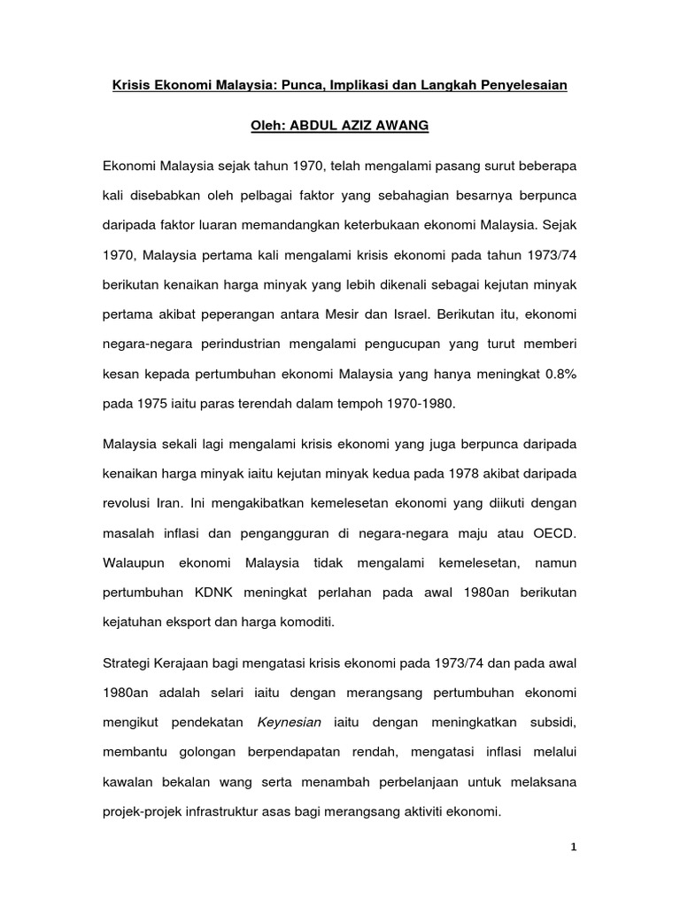 Krisis Ekonomi Malaysia Punca Implikasi Dan Langkah Penyelesaian Oleh Abdul Aziz Awang Pdf Free Download