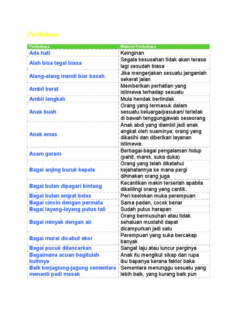 Himpunan Peribahasa Yang Terdapat Dalam Buku Teks Kssr Bahasa Melayu Tahun 4 5 Dan 6