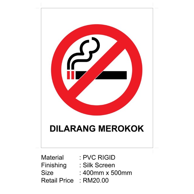 Dilarang Merokok Papan Tanda W40xh50cm We Print Malaysia