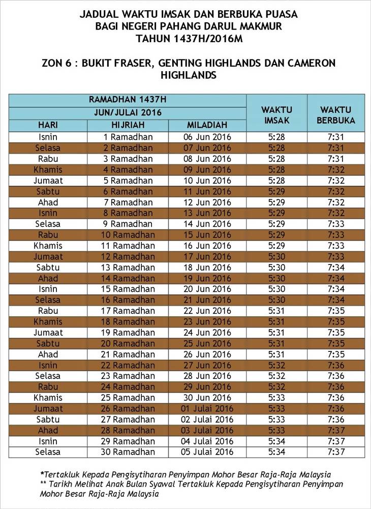 Kau Ilhamku Jadual Waktu Berbuka Puasa Dan Imsak 1437 H 2016 M Bagi Negeri Pahang